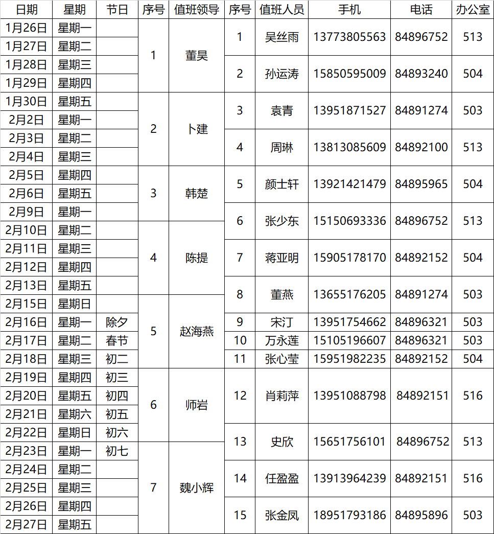 根据学校通知,现将学校及学院2026年寒假服务和值班安排通知如下。