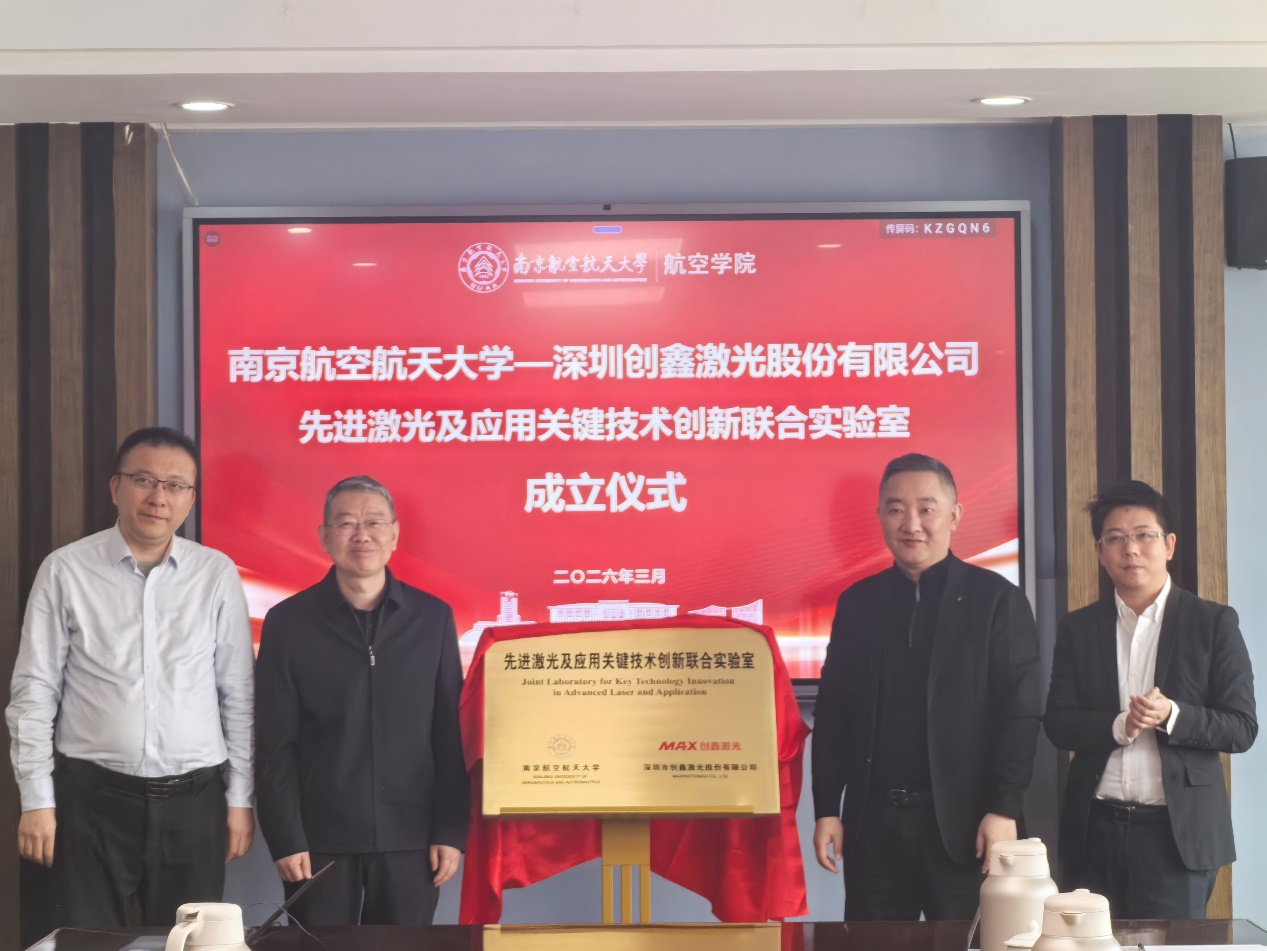 2026年3月19日上午,我校与深圳创鑫激光股份有限公司(以下简称“创鑫激光”)共建的“先进激光及应用关键技术创新联合实验室”揭牌仪式在英国上市公司365隆重举行。创鑫激光董事长蒋峰、董事长助理杨青峰、技术总工程师张心贲,英国上市公司365党委书记卜建、副院长董昊,联合实验室主任、英国上市公司365教授蒋彦龙及共建双方相关人员参加仪式。仪式由董昊主持。